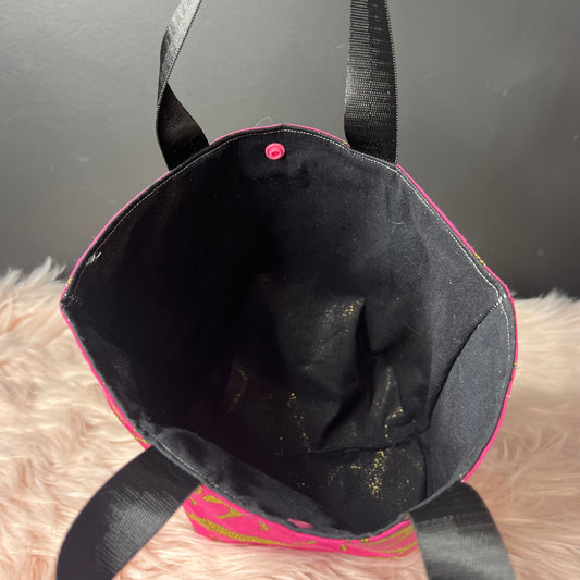 Pink Leopard Project Bag with Black Handles