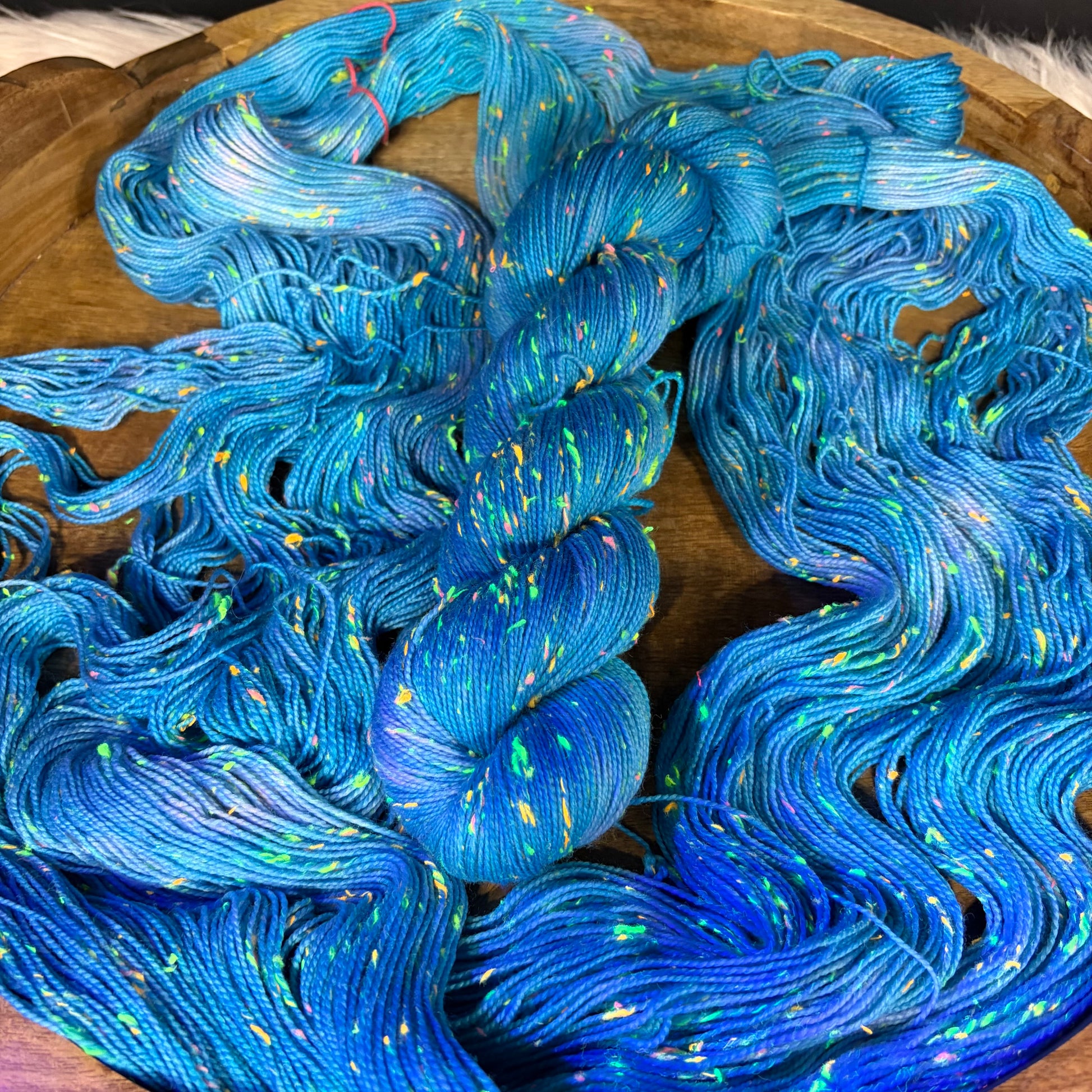 Care: Hand wash cold & lay flat to dry. If you must machine wash I strongly suggest a garment bag and COLD water. Washing hand dyed yarn in water above 106f can break the bond between yarn & dye.