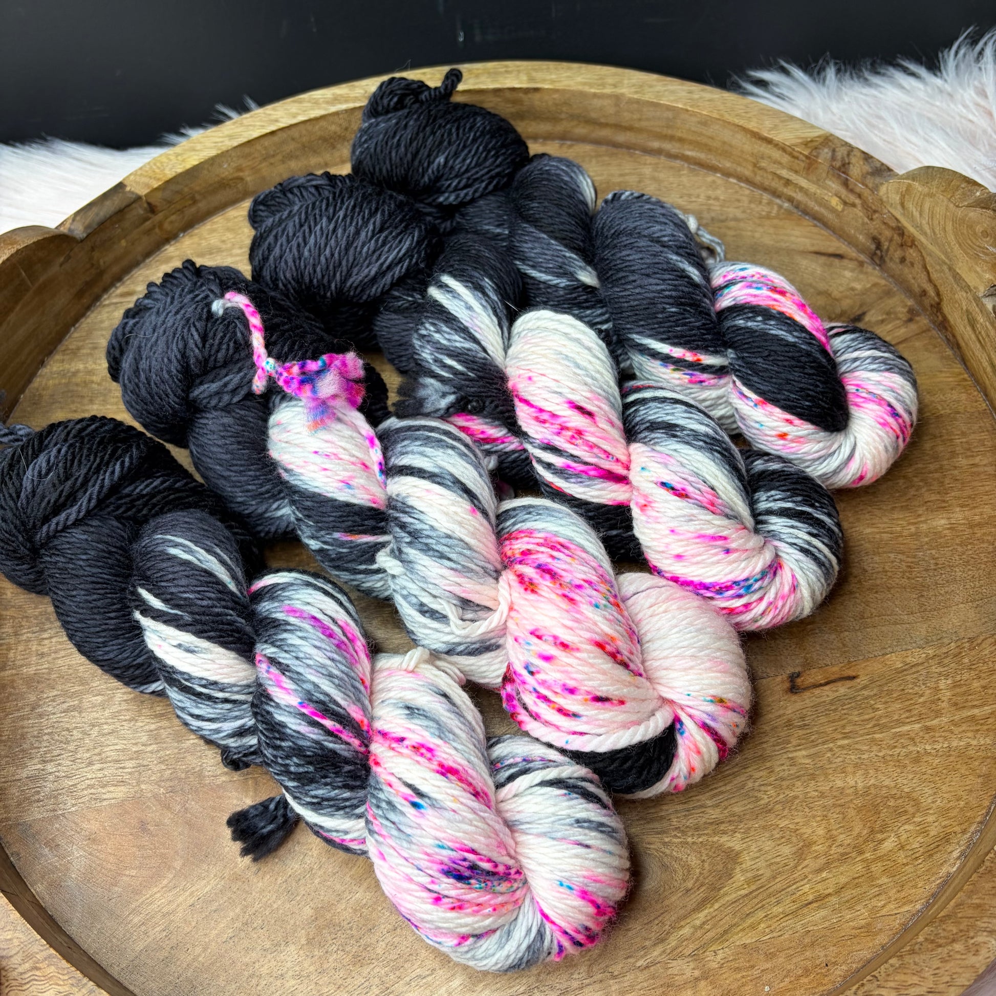Care: Hand wash cold & lay flat to dry. If you must machine wash I strongly suggest a garment bag and COLD water. Washing hand dyed yarn in water above 106f can break the bond between yarn & dye.