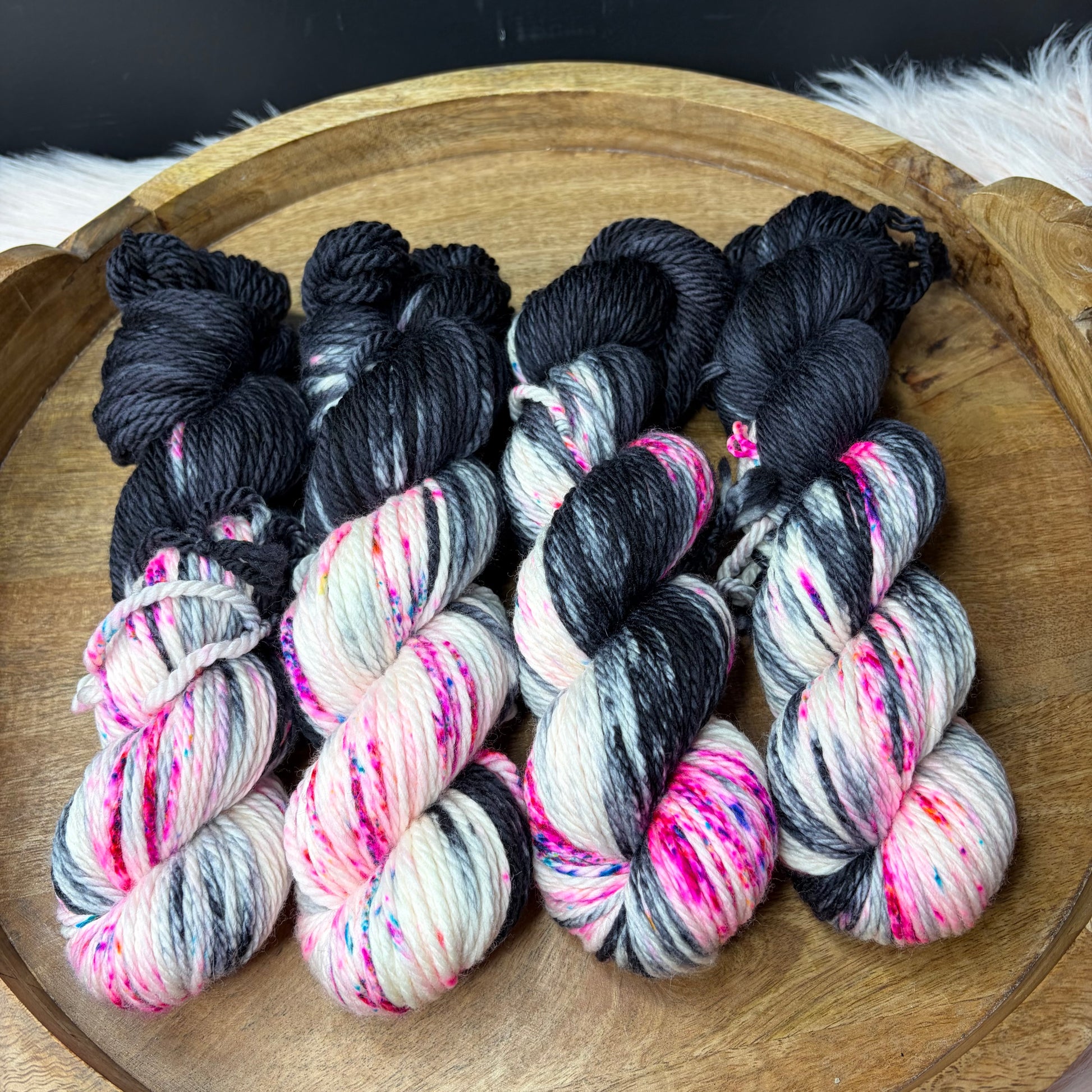 Edith Bulky : Named after Edith Head who was amazing costume designer! This base is soft and squishy. It is great for your cold weather garments and shawls, cowls, hats, you name it!