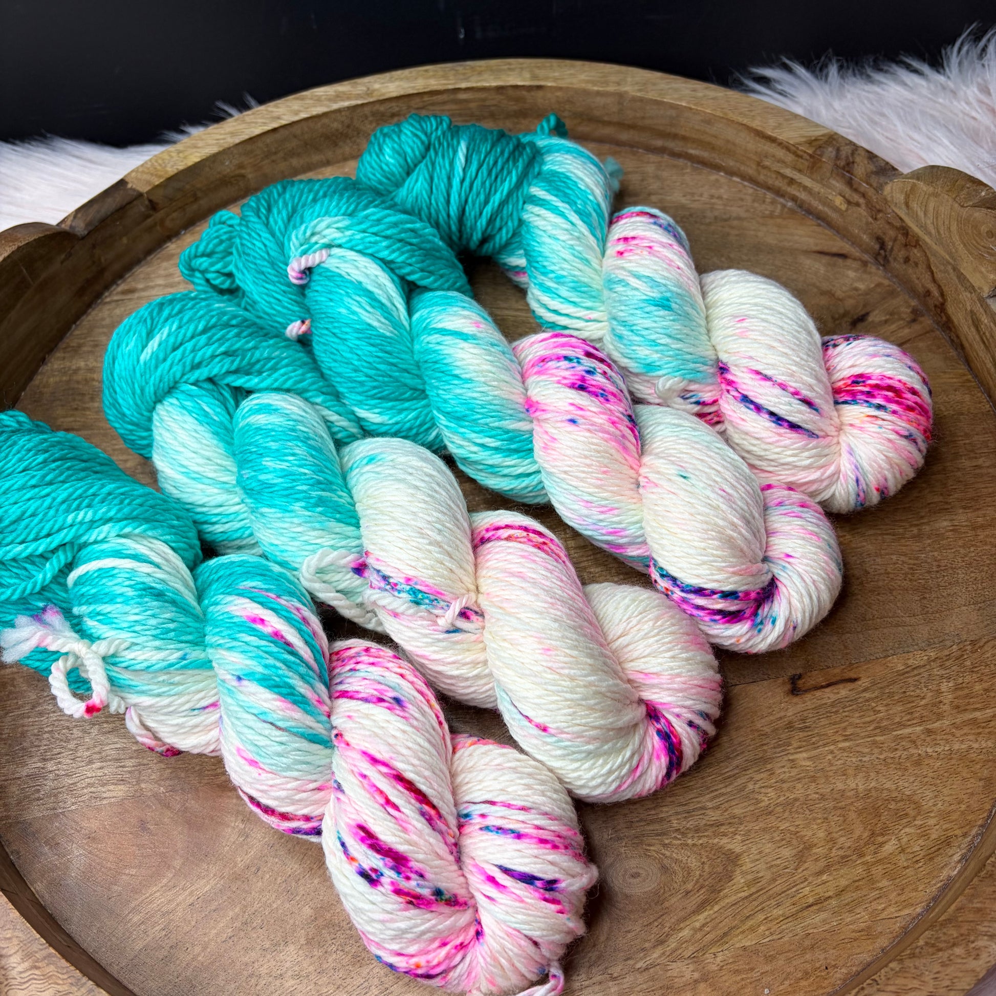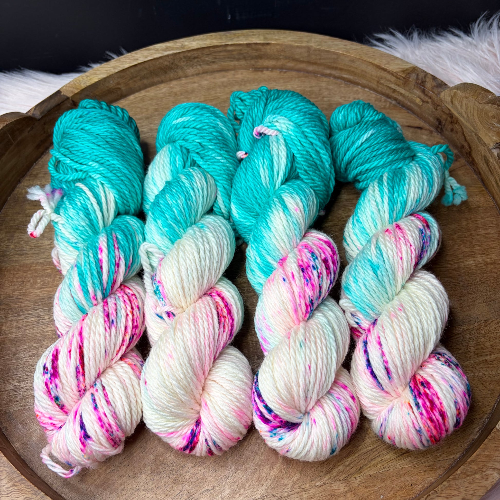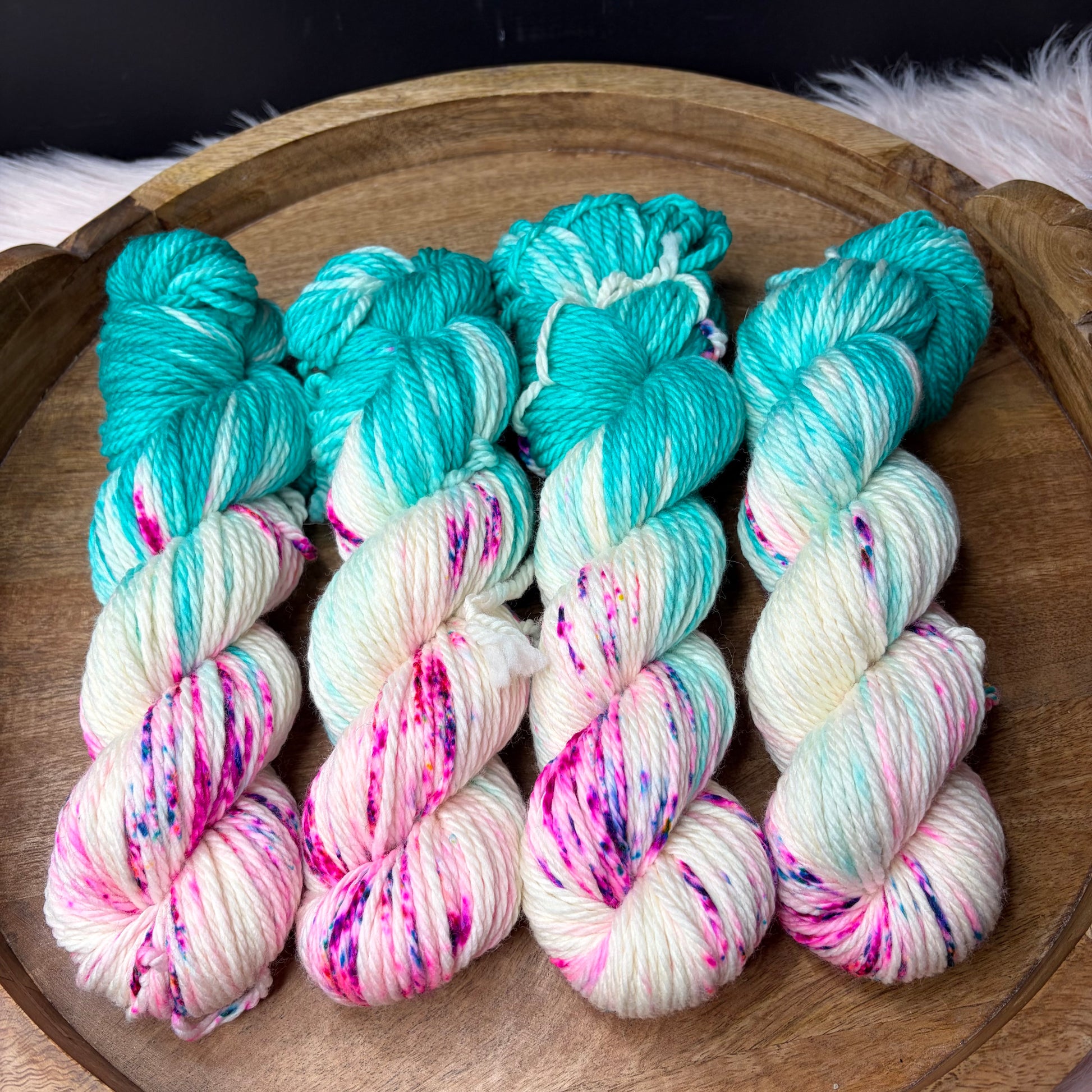 Care: Hand wash cold & lay flat to dry. If you must machine wash I strongly suggest a garment bag and COLD water. Washing hand dyed yarn in water above 106f can break the bond between yarn & dye.