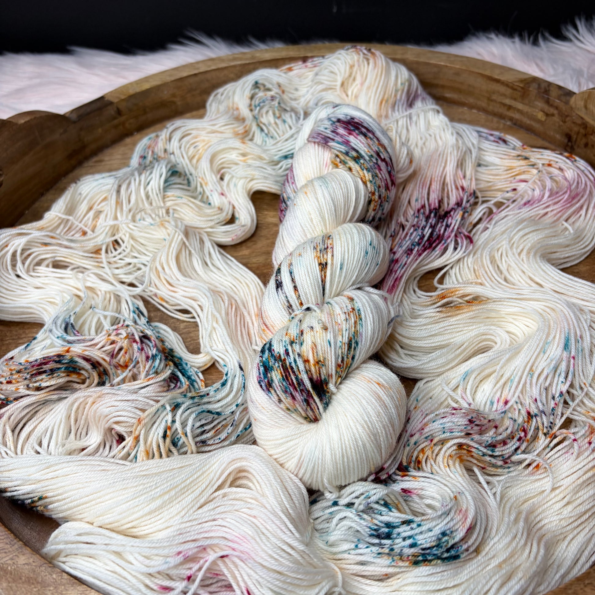 Care: Hand wash cold & lay flat to dry. If you must machine wash I strongly suggest a garment bag and COLD water. Washing hand dyed yarn in water above 106f can break the bond between yarn & dye.
