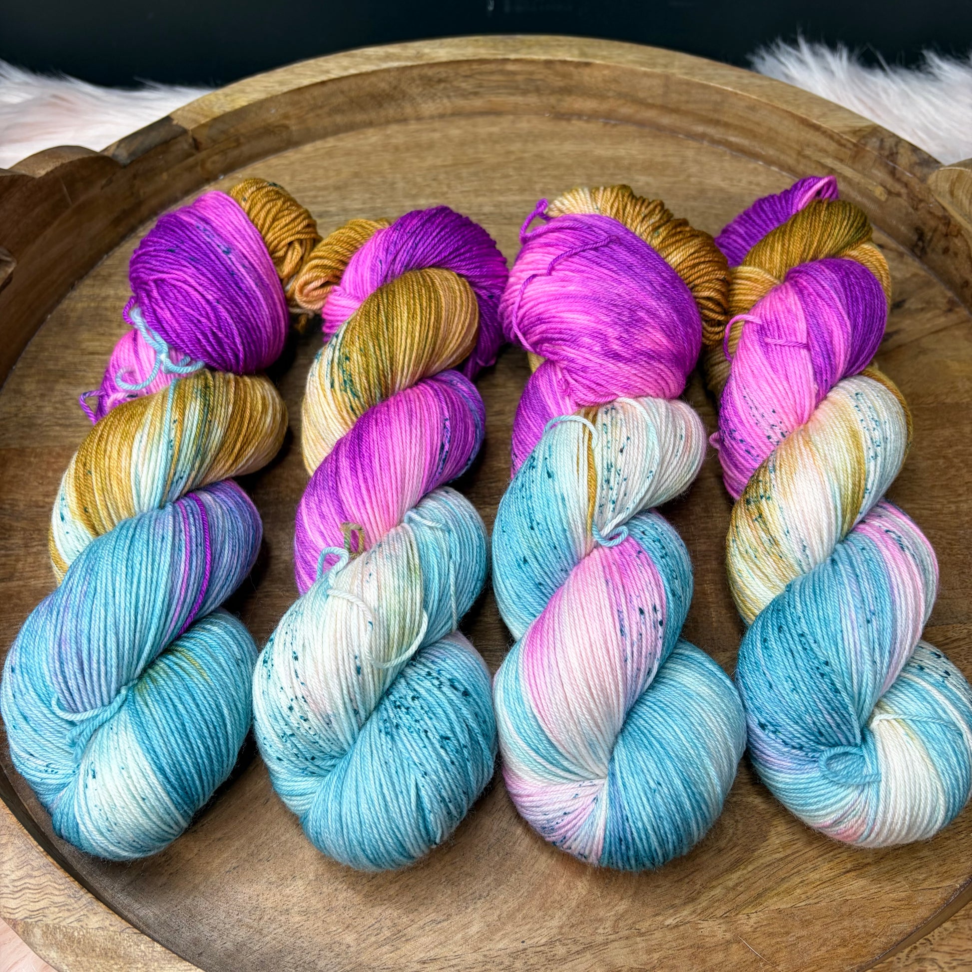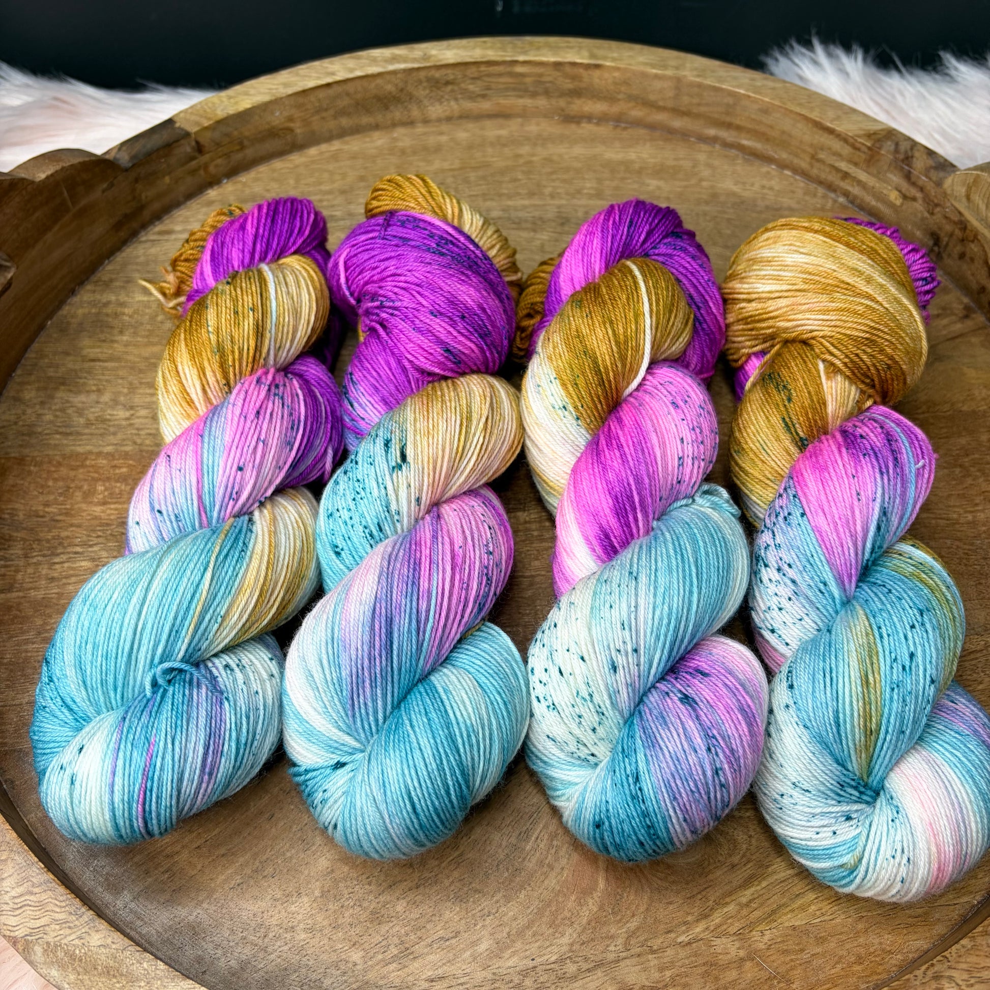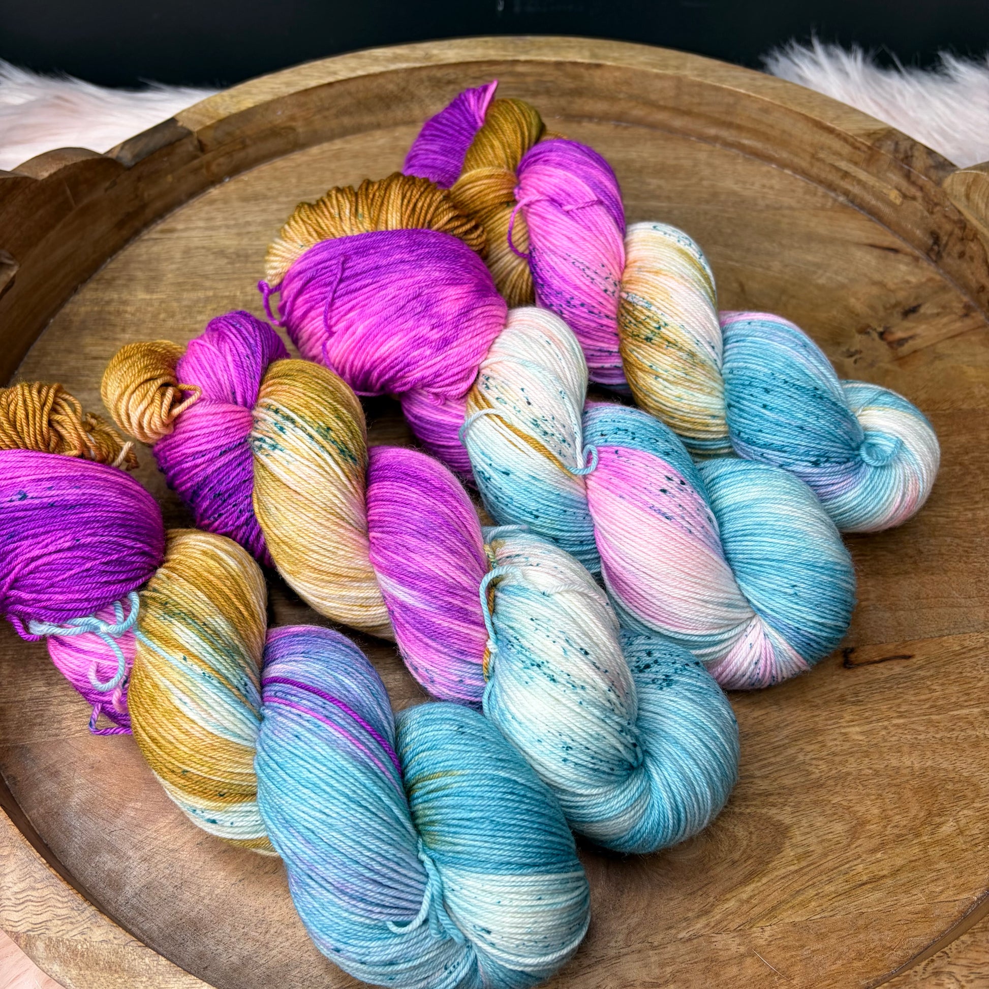 Care: Hand wash cold & lay flat to dry. If you must machine wash I strongly suggest a garment bag and COLD water. Washing hand dyed yarn in water above 106f can break the bond between yarn & dye.