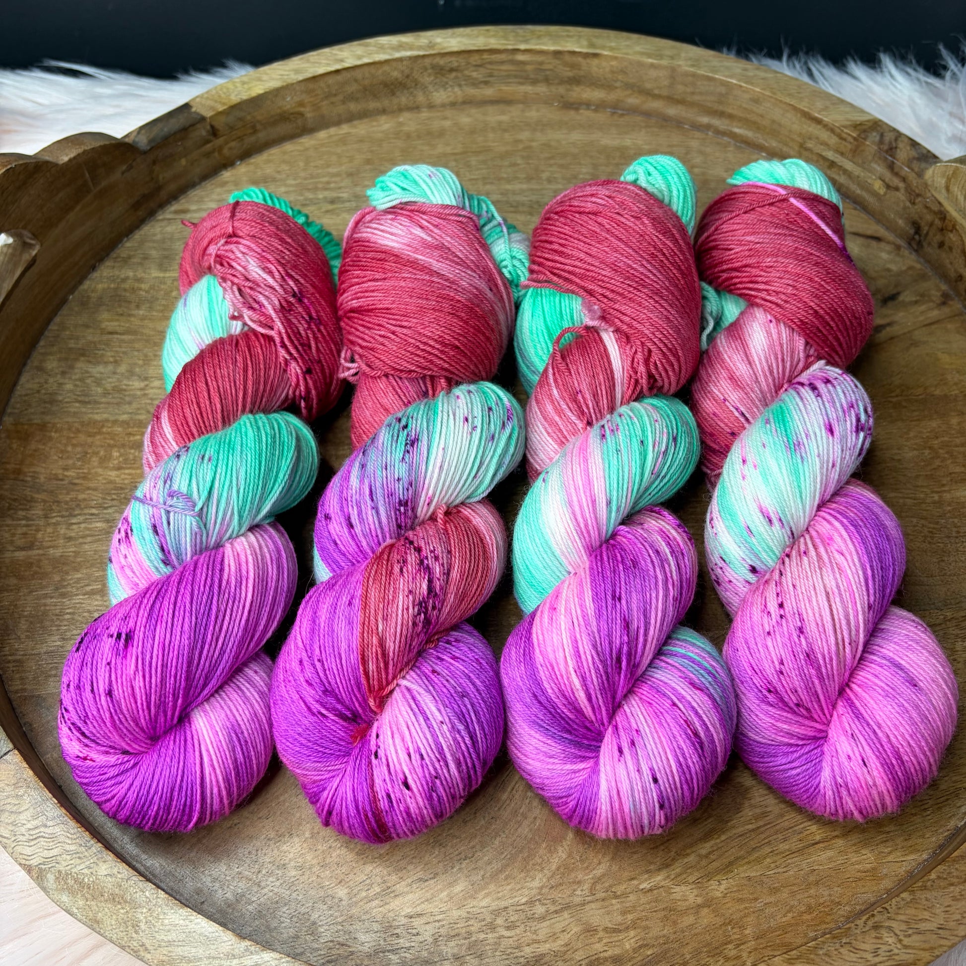 Jimmy Sock: Just like Jimmy's this yarn was made to be worn on your feet! It is strong yet soft, perfect for your every day socks. That's not to say socks are the only thing you can make with this yarn. Its also great for shawls, cowls, sweaters you name it! The tight twist and 25% nylon makes this yarn strong enough for about any project you throw at it and the super soft merino makes you want to cuddle it.