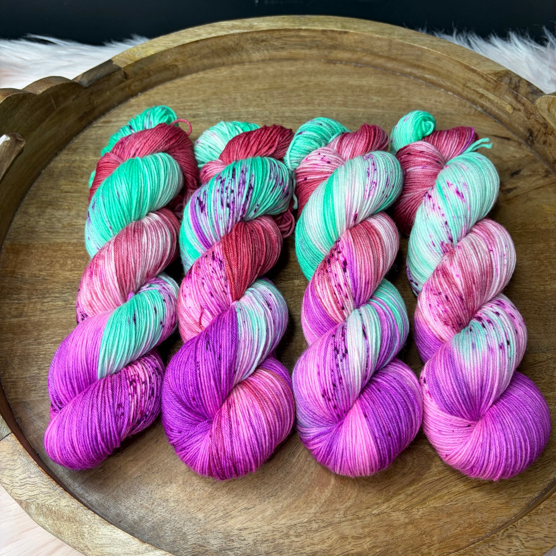 Care: Hand wash cold & lay flat to dry. If you must machine wash I strongly suggest a garment bag and COLD water. Washing hand dyed yarn in water above 106f can break the bond between yarn & dye.