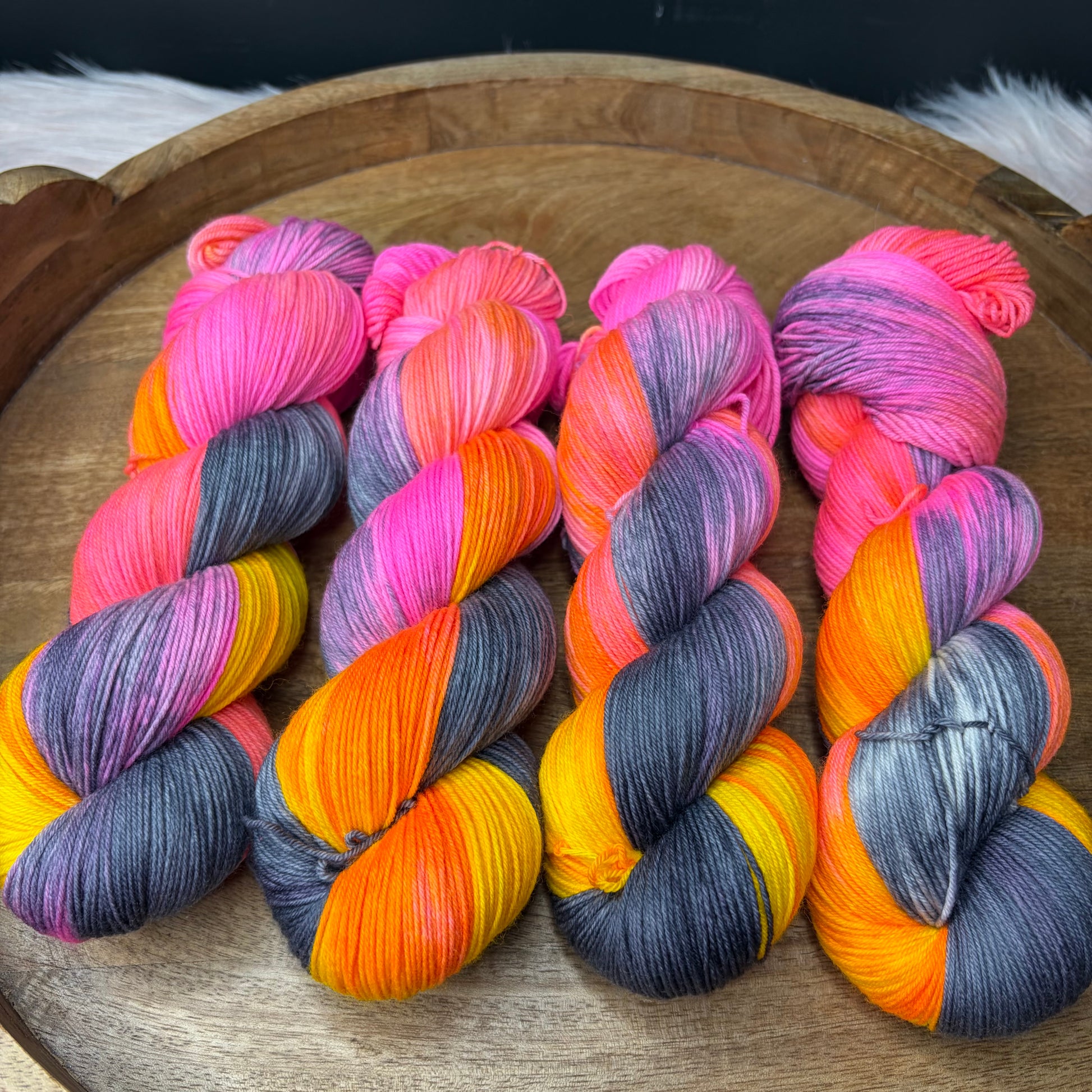Jimmy Sock: Just like Jimmy's this yarn was made to be worn on your feet! It is strong yet soft, perfect for your every day socks. That's not to say socks are the only thing you can make with this yarn. Its also great for shawls, cowls, sweaters you name it! The tight twist and 25% nylon makes this yarn strong enough for about any project you throw at it and the super soft merino makes you want to cuddle it.