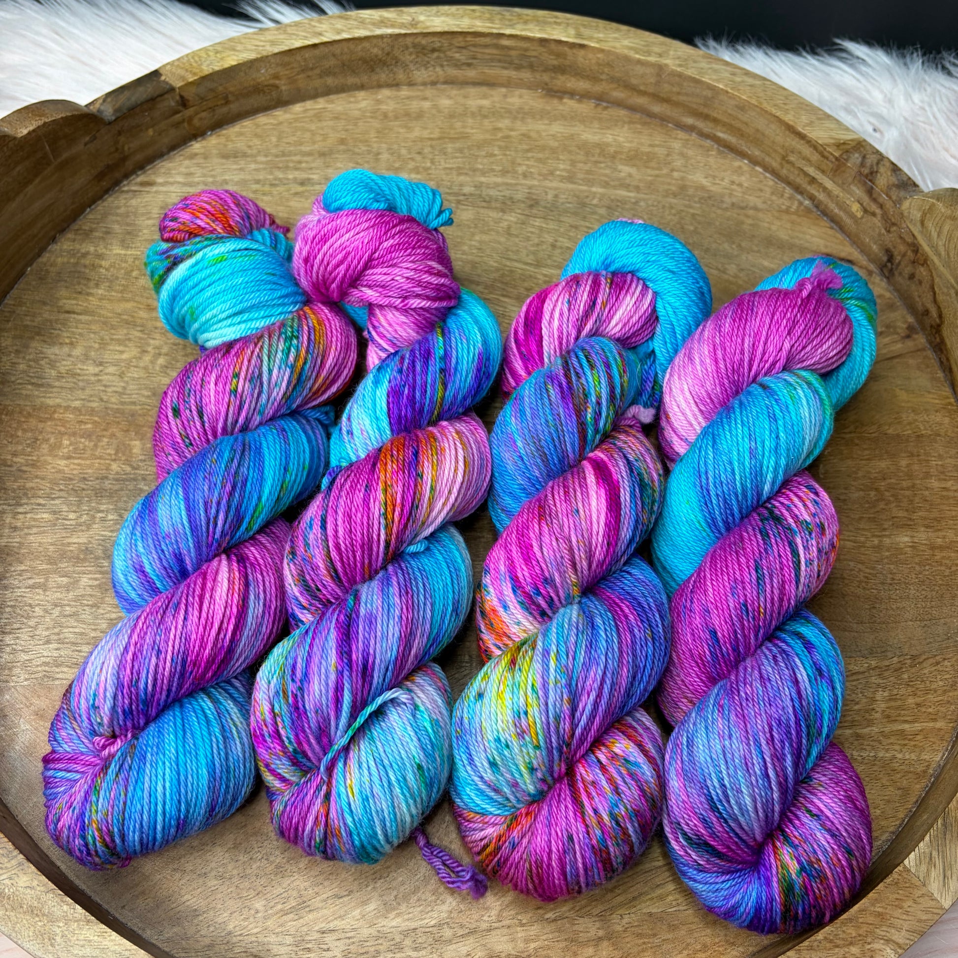 Care: Hand wash cold & lay flat to dry. If you must machine wash I strongly suggest a garment bag and COLD water. Washing hand dyed yarn in water above 106f can break the bond between yarn & dye.