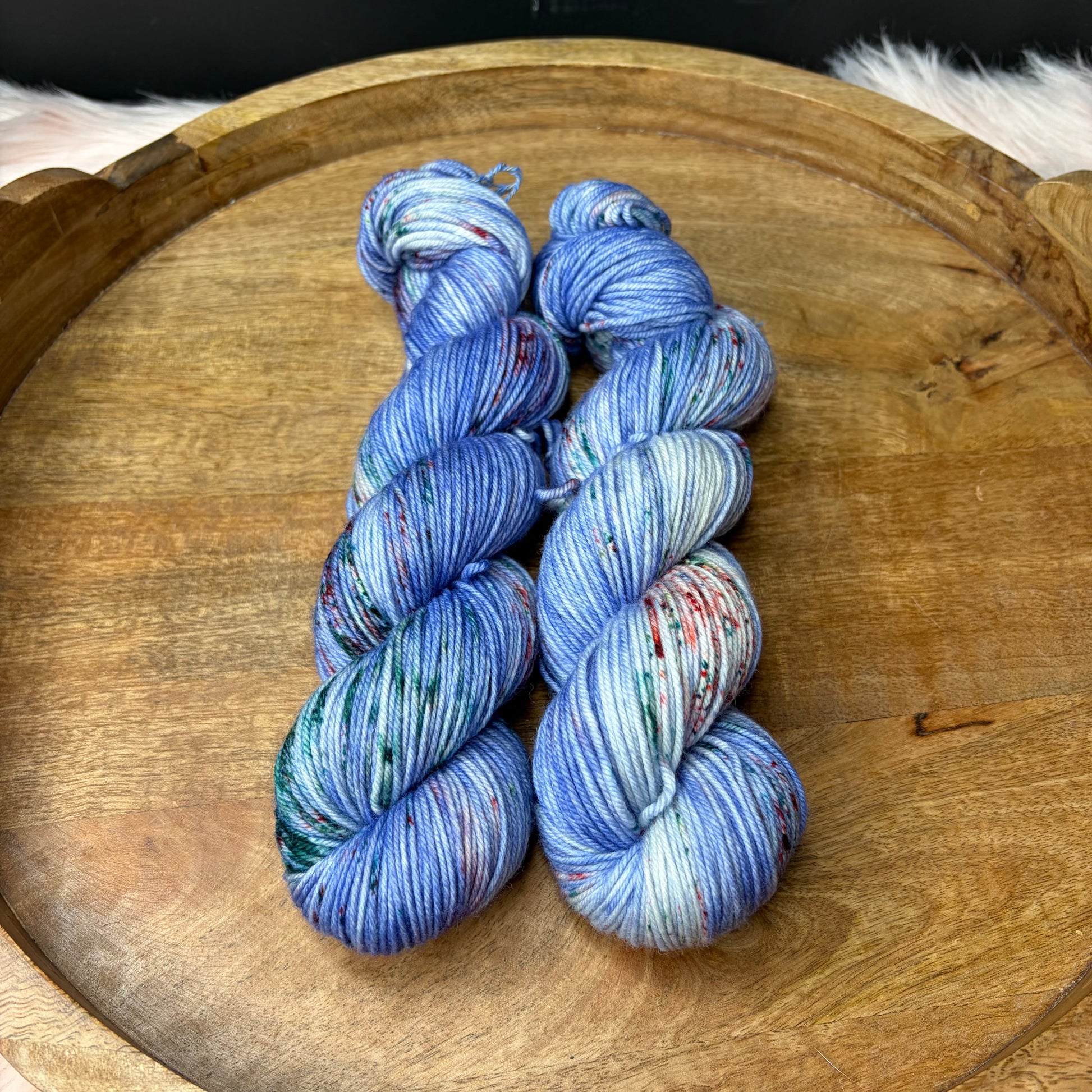 Trevor Morgan DK: Named after Rachel Trevor Morgan who is famous for making hats for Queen Elizabeth. This is my absolute favorite base. I use it for EVERYTHING, socks, shawls, hats, cowls, sweaters you name it. It has a 4 ply construction and is round, bouncing and smooth and has great stitch definition.