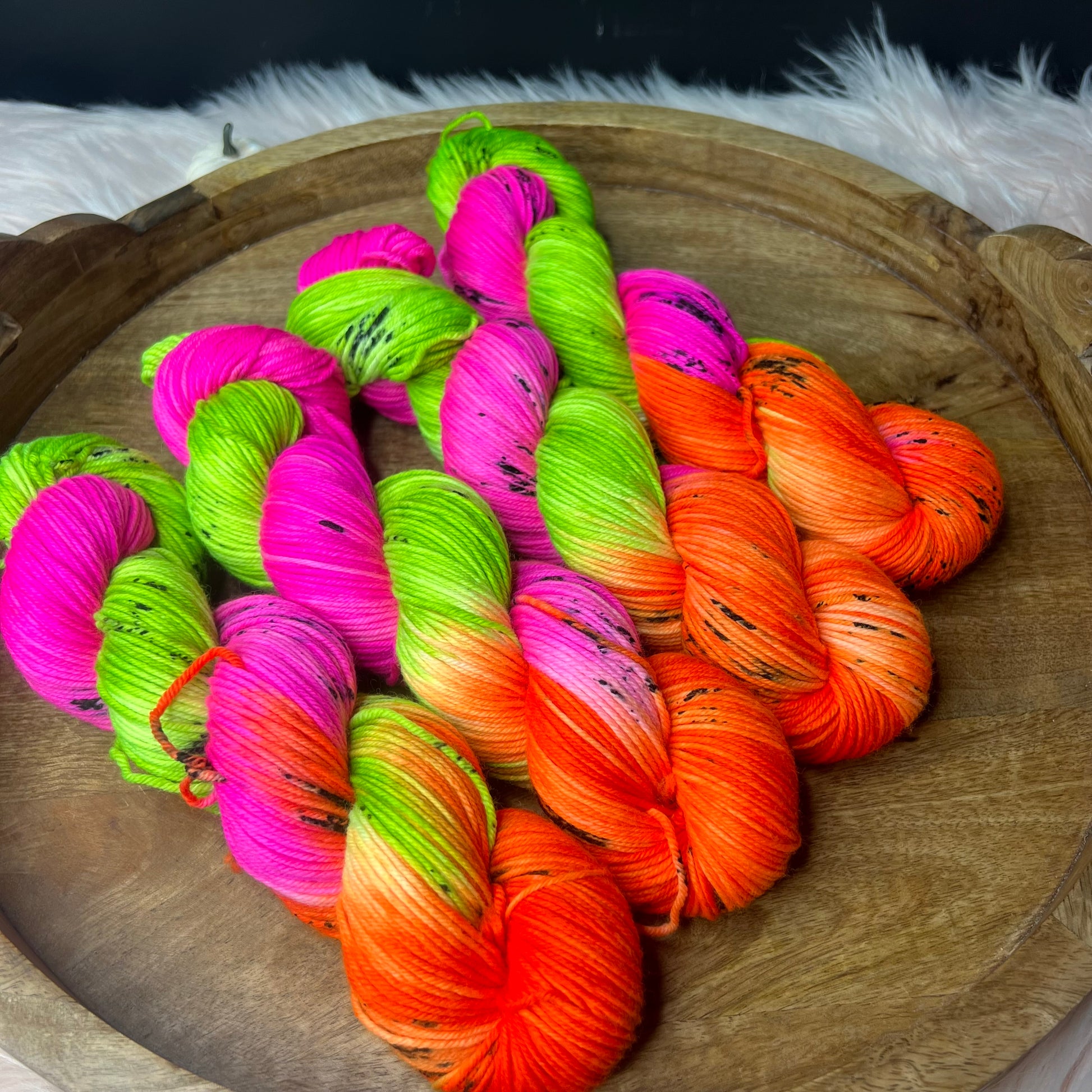 Care: Hand wash cold & lay flat to dry. If you must machine wash I strongly suggest a garment bag and COLD water. Washing hand dyed yarn in water above 106f can break the bond between yarn & dye.